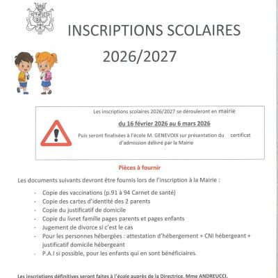 inscriptions rentrée scolaire 09/2026